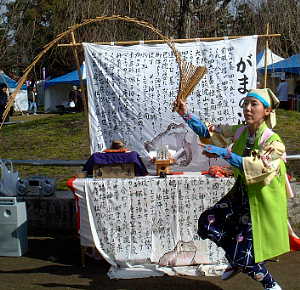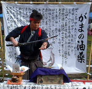 今年は2月24日(土)、25日(日)に行われる”京の朝市”の様子です。 時代祭で使われる牛車の展示や京野菜、名産品、小京都物産品の販売、 その口上が面白い大道芸の南京玉すだれ、ガマの油売り、バナナの 叩き売りなど、そして、映画村の役者さんらによる時代劇パフォーマンスや 郡上八幡の”郡上踊り”の披露などが予定されています。