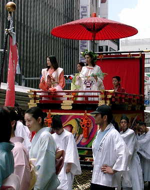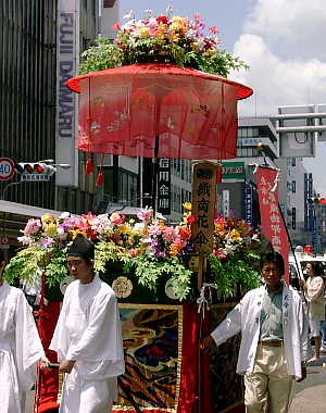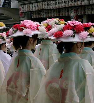 七月二十四日に行われる祇園祭花傘巡行です。 かつて、山鉾巡行が”先の祭”、”後の祭”と 二つに分かれて行われていたことの名残です。