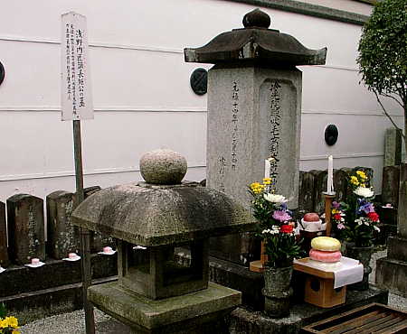 元禄十五年十二月十五日、寅の上刻、七つ時、今で云えば 午前四時でしょうか。今も語り継がれる旧播州赤穂藩浪士の 吉良邸討ち入りです。京都山科の忠臣蔵ゆかりの地でも 12月14日に義士祭がおこなわれ、毘沙門堂から大石神社に かけて四十七士に扮した義士行列もおこなわれます。 また、岩屋寺では義士法要会、大石神社では義挙記念祭が 営まれます。 瑞光院は浅野内匠頭の妻遙泉院が再興した寺院。以前は堀川 寺ノ内にあったようですが、昭和の中頃に浅野家ゆかりの 山科に移され、旧地には瑞光院前町の地名として残ります。 境内には遺髪塚、供養塔などが幾つもあります。 |