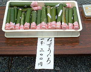 この時期だけ作られる”はねずういろ”です。 黒砂糖と寒天、真竹の香りが加わって、 自然な甘さのなかで素朴な味わいが広がります。 地元の方々が郷土に伝わる味を伝えようと、 全て手作りで作られます。 今日、明日、そして、明後日の”はねず踊り”まで 販売されていますが、数に限りがあり”はねず踊り” 当日は午前中には売り切れとなるようです。 ”はねず踊り”は「唐棣(はねず)踊り」とも書くようで、 唐棣はニワウメの古名らしいです。 色そのものを表す場合は、朱華(はねず)色があり、 同じような色合いのニワウメから唐棣踊りに結びつく ようです。 この当たりはまた別の話題として登場させたいと思います。 |