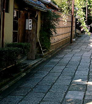石塀(いしべ)小路は高台寺の西側に 位置する300m程の小路です。 石畳、石の築地がその景観を楽しませて くれます。かつて石原裕次郎も住んで いたとか。 今はお茶屋、料理旅館、料亭、スナック など四十軒ほどの地域となっています。 テレビドラマなどにもよく登場します。