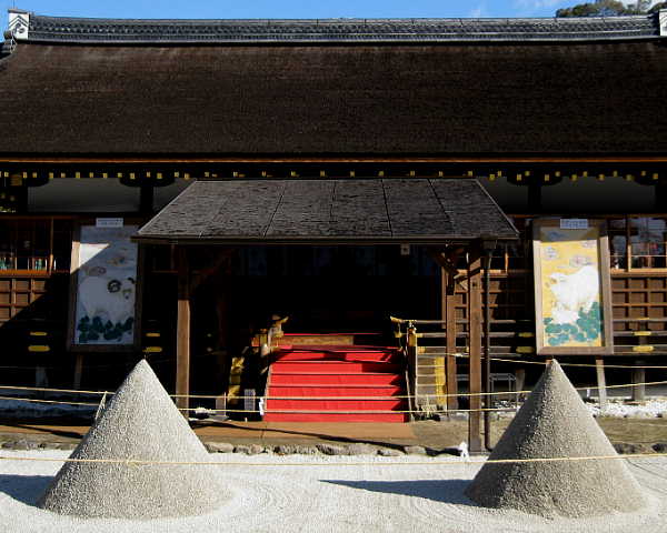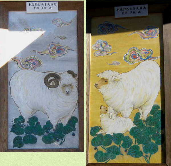 来年の干支は”未” 細殿(ほそどの)の前に二つの絵柄の絵馬が奉納されています。