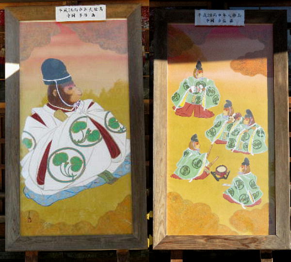 来年の干支は”申” 細殿(ほそどの)の前に二つの絵柄の絵馬が奉納されています。