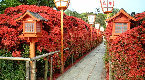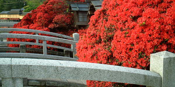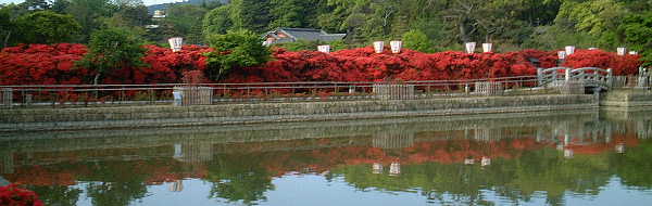 八条ガ池を渡るように霧島ツツジが咲き誇ります。