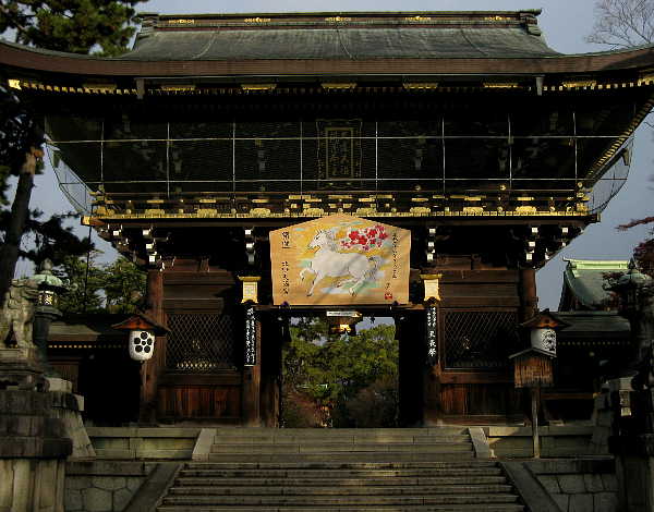 来年の干支は”午” 毎年恒例、楼門に掲げられた強大な絵馬。