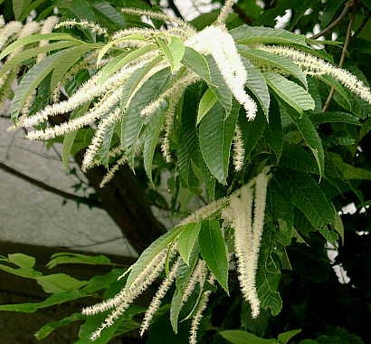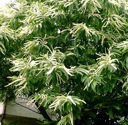 栗の花です。イガ栗は見ることはあっても、なかなか 栗の花を見る機会は少ないと思います。 「栗花落」と書いて、これで「ついり」と読むそうです。 梅雨に入る頃は栗の花が散る頃でもあるとかで、梅雨と 関わりある言葉のようです。 花々は正直ですね、この栗の花が散れば梅雨入り〜〜。