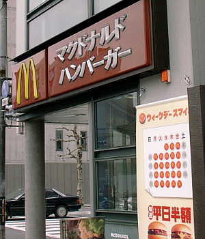 京都でマックと言えば、 大抵パソコンのことかと思うけれど、 関東ではマクドナルドのことらしい。 では、京都でマクドナルドをどう 表現するのかと云えば、”マクド”。 ただ、これは京都だけではなく 関西共通の話。 九州や東北、北海道では何と言うのか? 少々興味が湧いてきます。 そして、京都では真っ赤なマクドの 看板ではなく古都に馴染むように少し 茶色ぽい看板が多い。 ”平日半額”だって… 少々写真が古いか〜〜〜