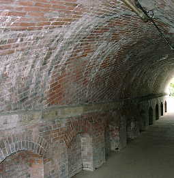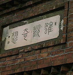 「ねじりまんぽ」とは煉瓦工法のひとつらしいです。 煉瓦がねじられながら積み上げられているのが判るかと思います。 新緑が綺麗でしょう。場所は地下鉄東西線の蹴上駅から南禅寺へと 向かう所です。 トンネルの上には、「陽気発処」の額がはめ込まれています。