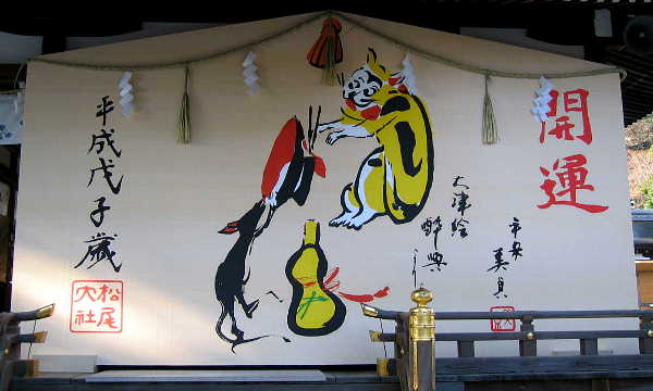 来年の干支は”子年”、 毎年恒例、松尾大社にお目見えした子年のジャンボ絵馬です。