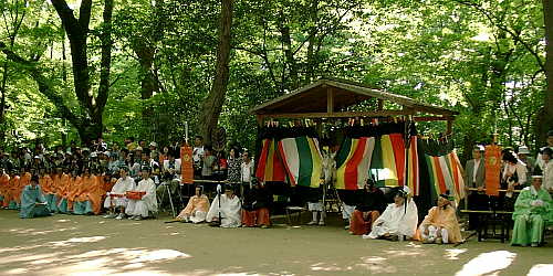 5月15日の葵祭、路頭の儀の前祭として行われる12日の 下鴨神社の御蔭祭です。御蔭神社から神霊を迎え、糺の森で 執り行われる切芝神事の様子です。御蔭祭、御蔭神社に ついては本館でも紹介していますので参考にして下さい。
