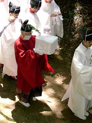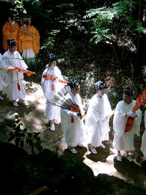 葵祭に際しての神霊を本社へ迎える神事。 御蔭祭は八瀬の奥深い山中の御蔭神社で5月12日に行われます。 幕の中で行われる神事の為、詳細は見ることが出来ません。 神霊を迎えた行列は下鴨神社へと向かい、糺の森で 切芝神事、東遊などが奉納されます。 上賀茂神社でも神霊を迎える”御阿礼(みあれ)神事が行われますが、 こちらも千年に渡り非公開の秘密神事。 高野川沿いにあった御蔭神社の社殿は江戸時代に土砂に埋まり、 現在は叡山電鉄の八瀬駅から南へ20分ほどの山中にあります。