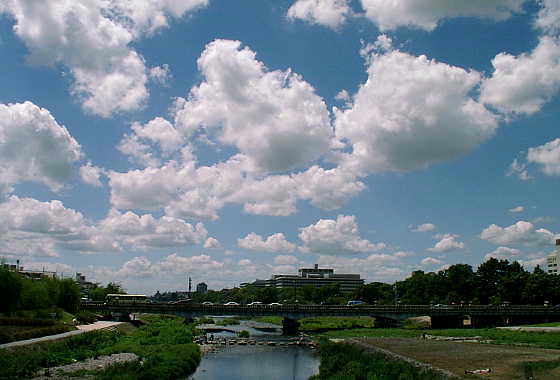 夏の日の一日、雲、雲がポカリ、ポカリと不思議な光景でした。