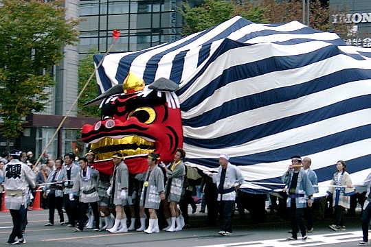 京都市民の文化祭、「京都まつり」で披露された招請団体の祭です。 静岡県掛川市に伝わる仁藤の大獅子です。由来などご存じの方が おられましたなら、掲示板ででも教えて下さいね。