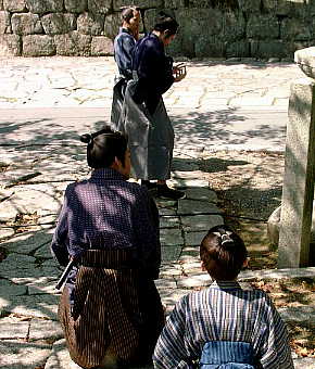 脇差しの凛々しき武士の面々。 「御主らどこの家中の面々ぞ」… なんてね。 年末の時代劇のロケだそうです。 京都では時折見かける光景。 ちょっと急いでいたので、じっくりと 見ることは出来なかったけれど、 名のある俳優さんは見かけなかった。 年末時代劇は「新選組」だったかな?