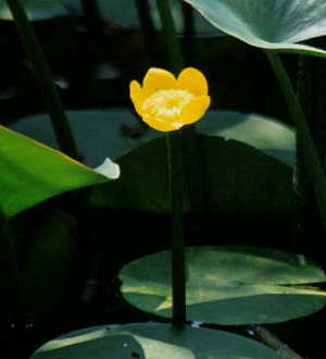 平安神宮神苑の睡蓮、川骨(コウホネ)です。 右下の写真、小さな黄色い花が川骨ですが、河骨と書かれる こともあります。同じくスイレン科の多年草。
