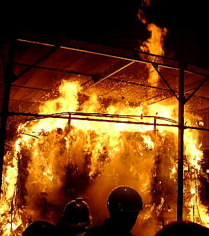 吉田神社で三日の夜分に行われる火炉祭です。 古いお札、御守りが、祈願、感謝して一気に焼き祓われます。