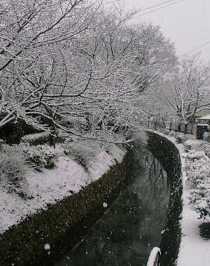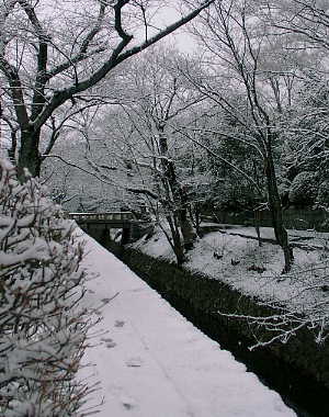 雪景色の哲学の道です。 春の桜爛漫の景色とは大違い。 今年は、雪景色にはならないのでしょうか。 来週にかけて寒波がやって来るとは云っていますが…